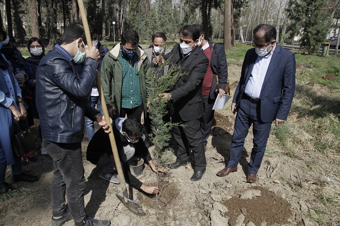 پایان بخش مراسم ششمین روز هفته منابعطبیعی در دانشکده منابعطبیعی دانشگاه تهران مراسم نهالکاری رییس